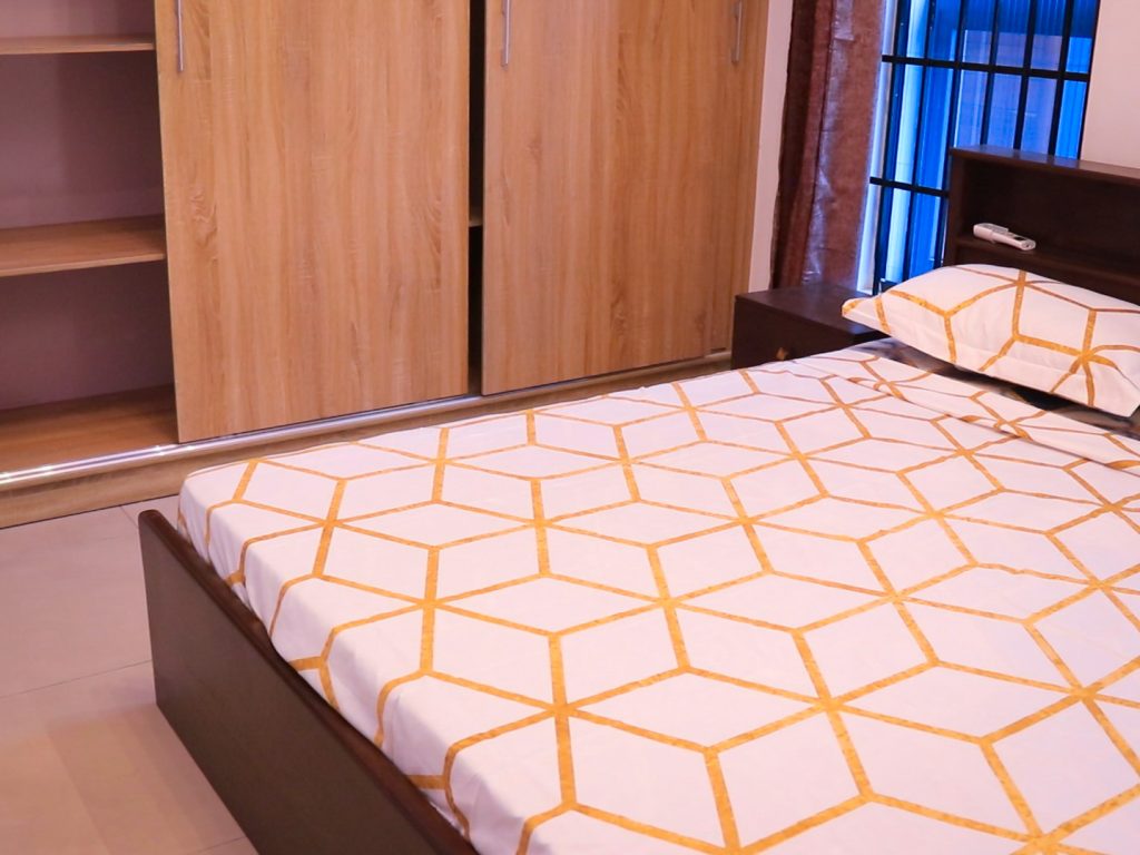 En effet, la résidence comprend trois chambres spacieuses et un salon très bien équipé, offrant un espace de vie confortable et fonctionnel. Chaque chambre est dotée de rangements intégrés et de fenêtres permettant une luminosité naturelle optimale. Le salon est aménagé avec des meubles modernes et dispose d'un système de climatisation pour votre confort.