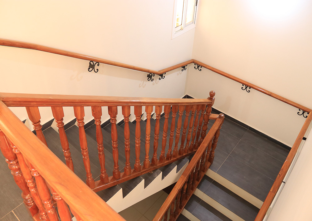 - Escalier intérieur avec garde-corps en bois massif